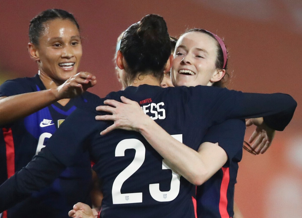 Rose Lavelle scores a goal for the United States in a 2-0 win over The Netherlands as the national team returns from its longest layoff since 1990.