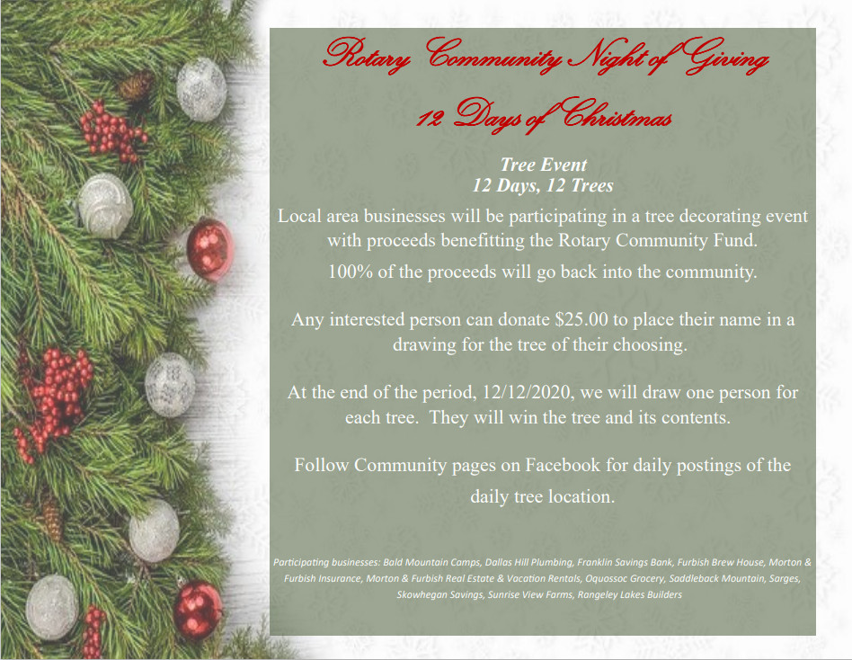 The Oquossoc ATV Club held their first Christmas Toy Drive, which this year benefited the Giving Tree of Rangeley. The Giving Tree has decided to share the toys with the Rangeley Fire Department, for their toy drive. Since their October Meeting/Picnic, until Thanksgiving, toys were collected at 3 locations: Boss Power Equipment in Rangeley, River […]