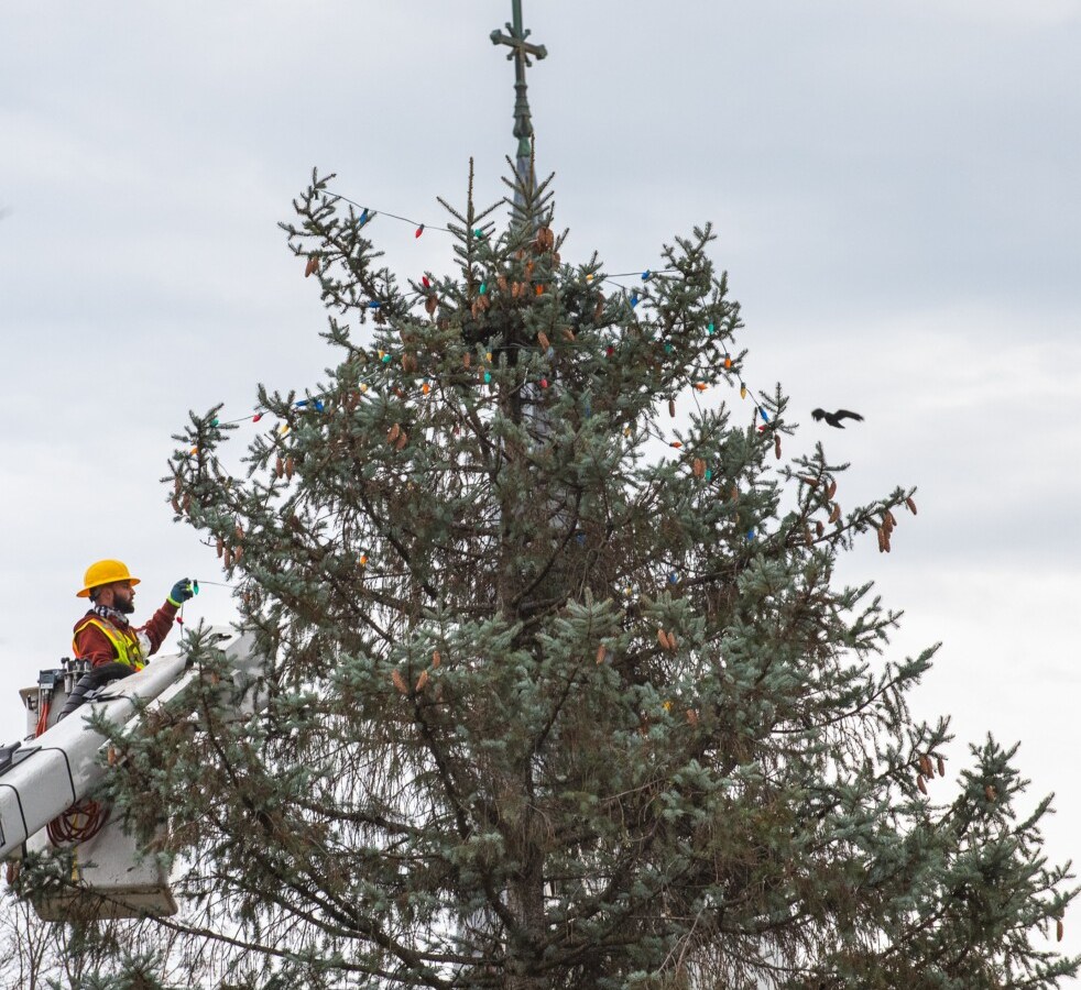 Lewiston Public Works employees adorned the holiday tree in Kennedy Park with it’s annual decorations.