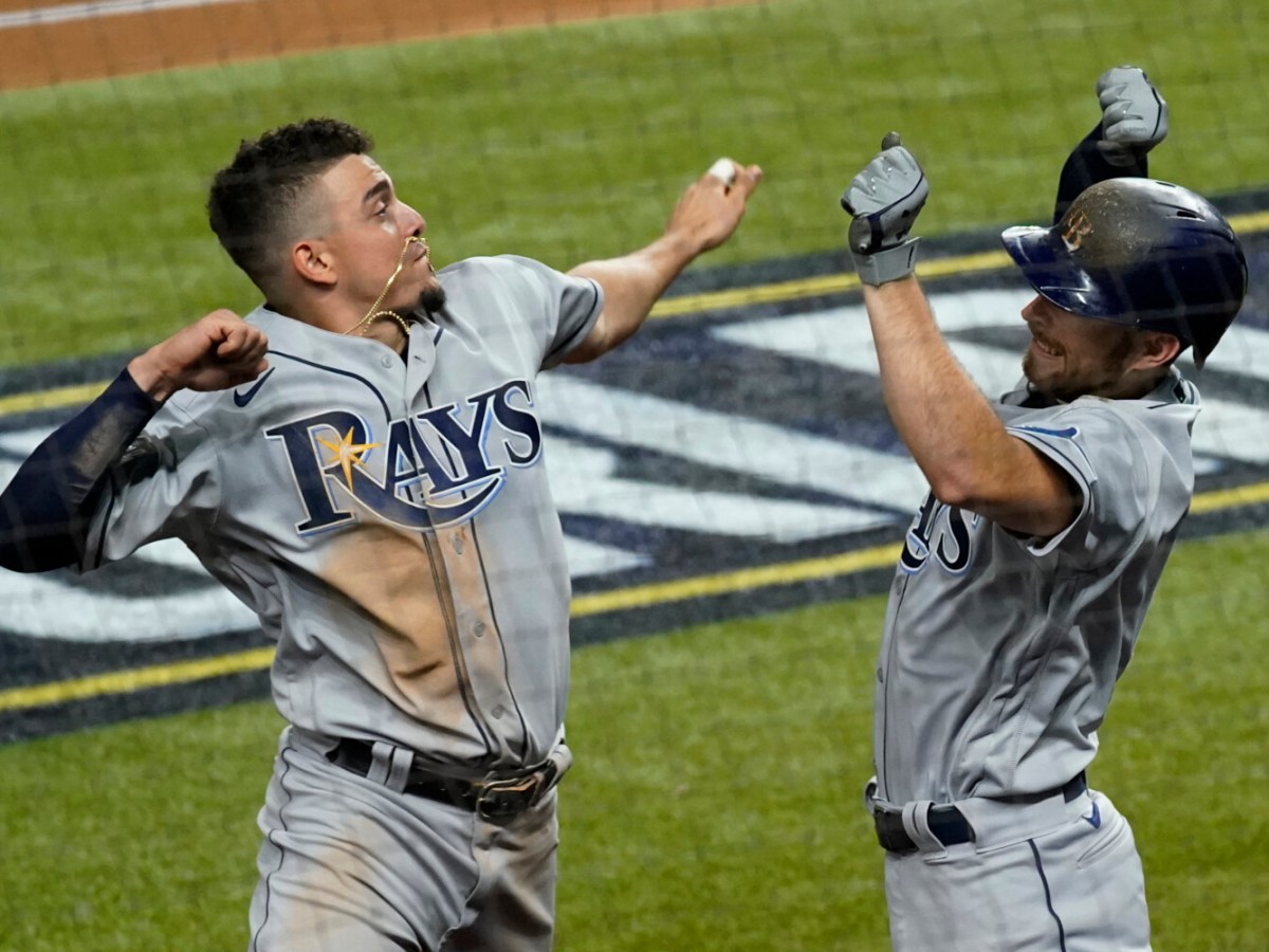 Brandon Lowe homers twice and Tampa Bay holds off a comeback by the Dodgers, tying the series at a game apiece.