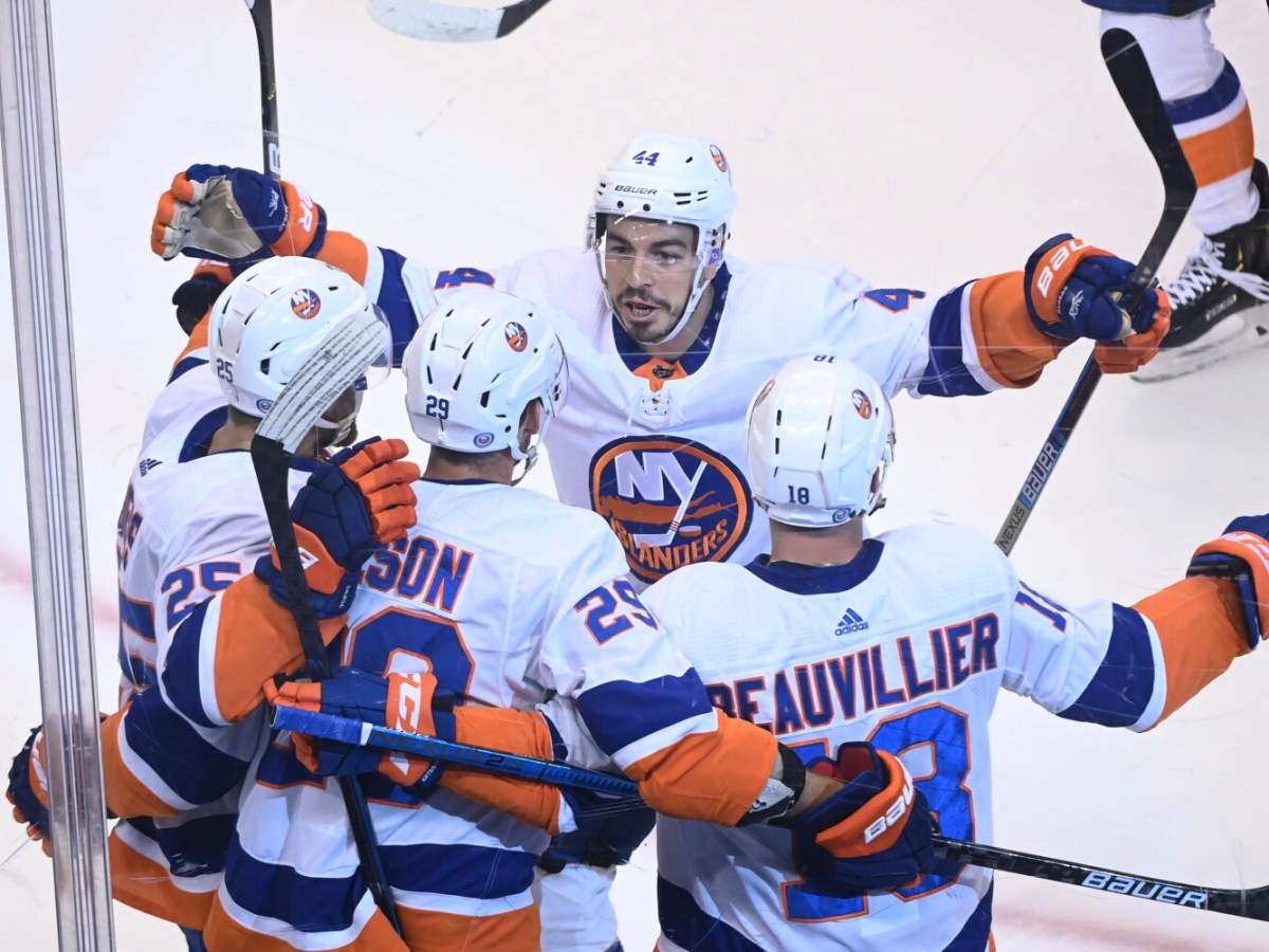 Anthony Beauvillier scores twice and Semyon Varlamov makes 21 saves for the shutout in Game 5.