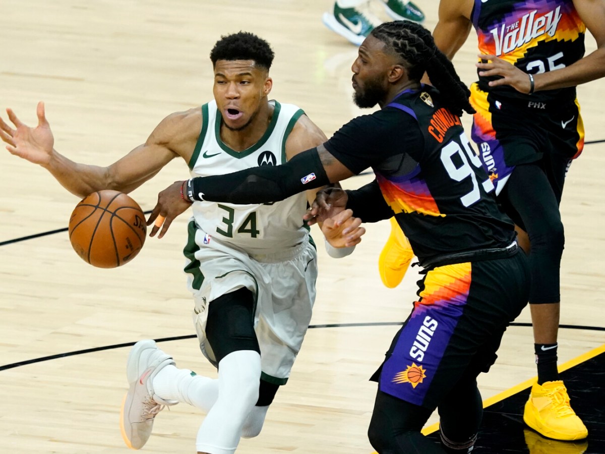 Bucks’ Antetokounmpo returns, but Suns win opener in NBA finals, 118-105