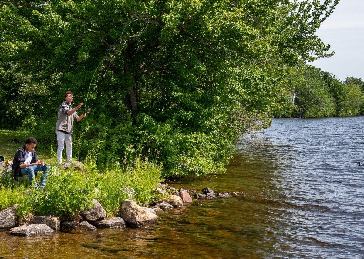 A pair of young boys start off summer vacation with fishing on the Androscoggin River Thursday morning.