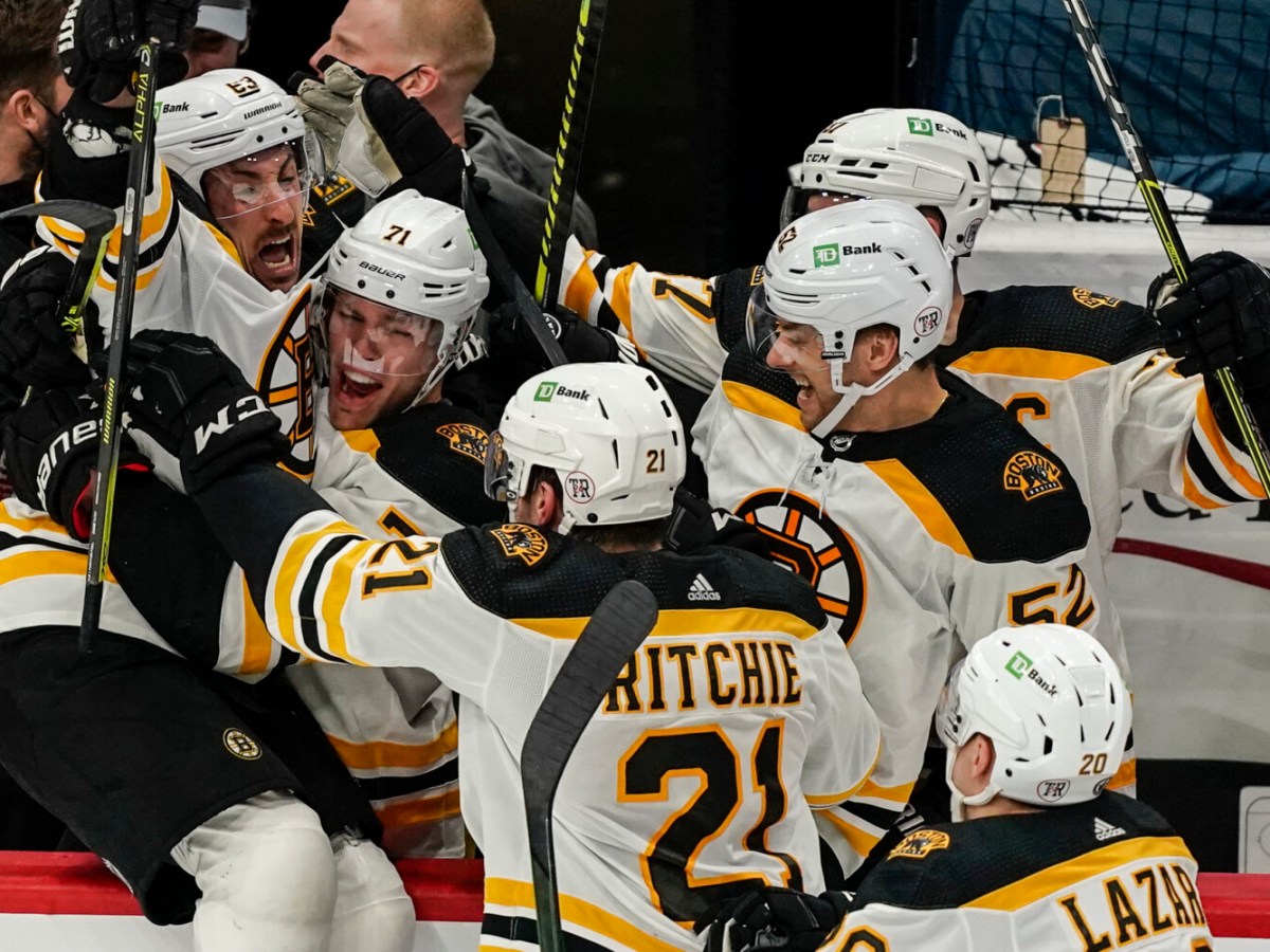 Marchand scores 39 seconds into OT as Bruins beat Capitals to even series