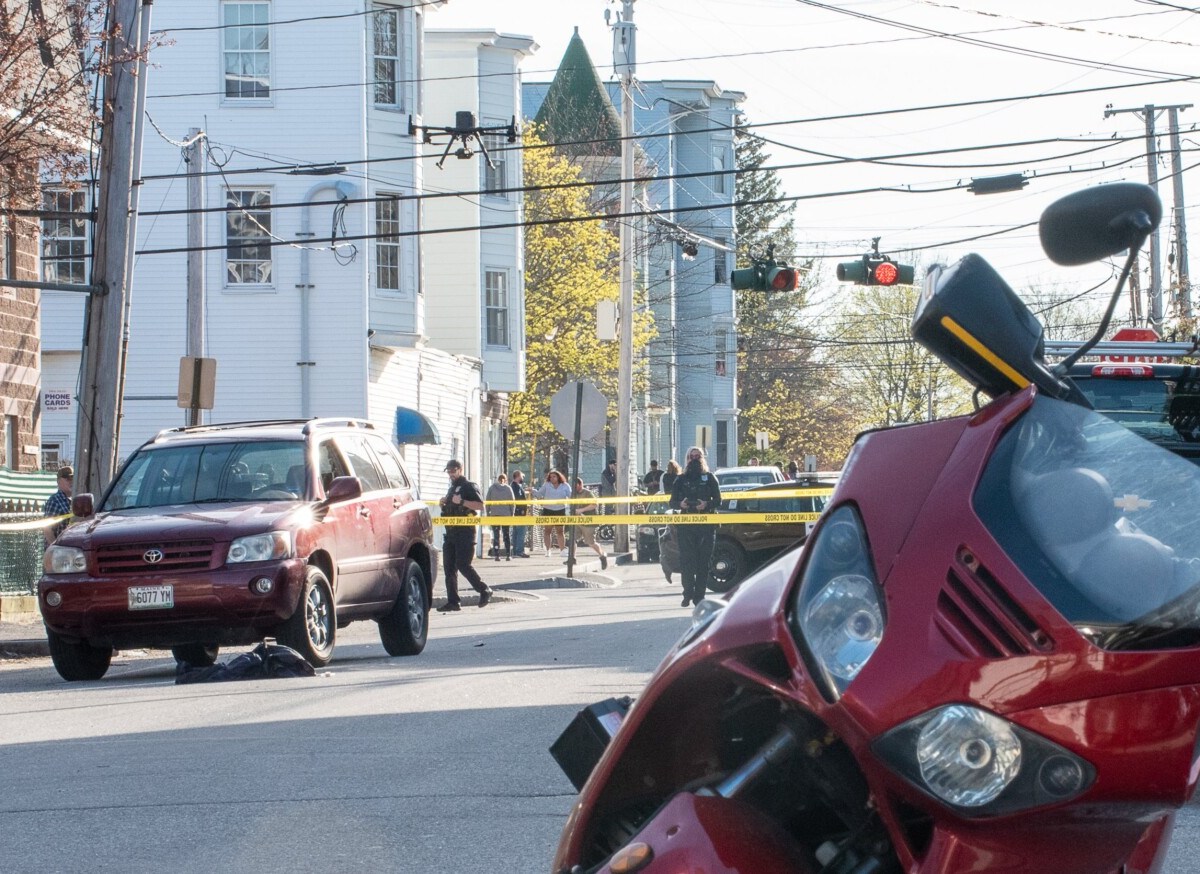 Motorcycle collides with two SUVs at Walnut and Bartlett streets.