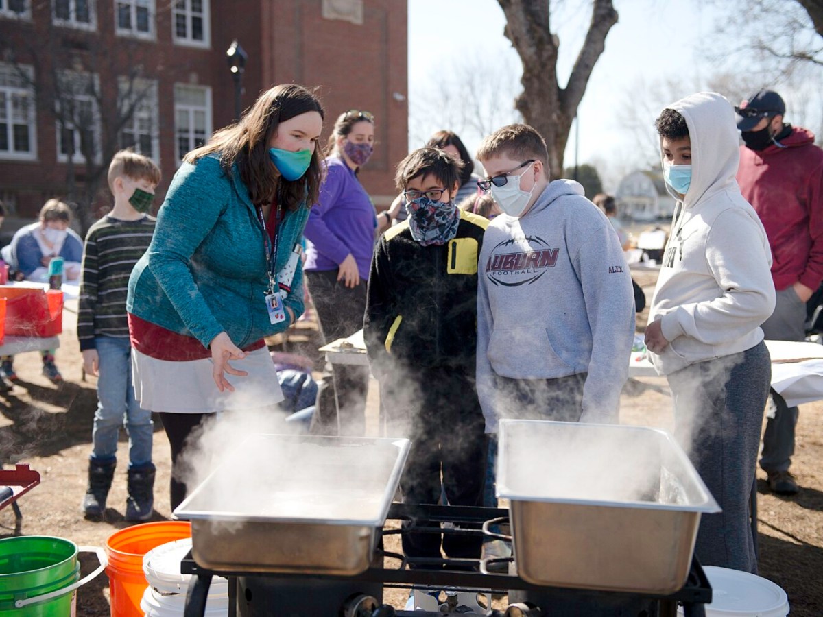 Auburn students learn math, history and writing skills while making maple syrup at Walton Elementary School.