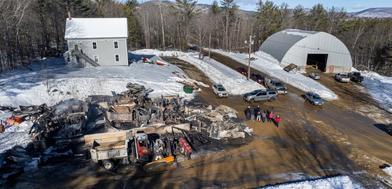 The call came in around 11:30 p.m., and early reports were that the garage at 85 Peru Center Road was fully ablaze and that the structure was collapsing. At least two explosions were reported as the building burned.