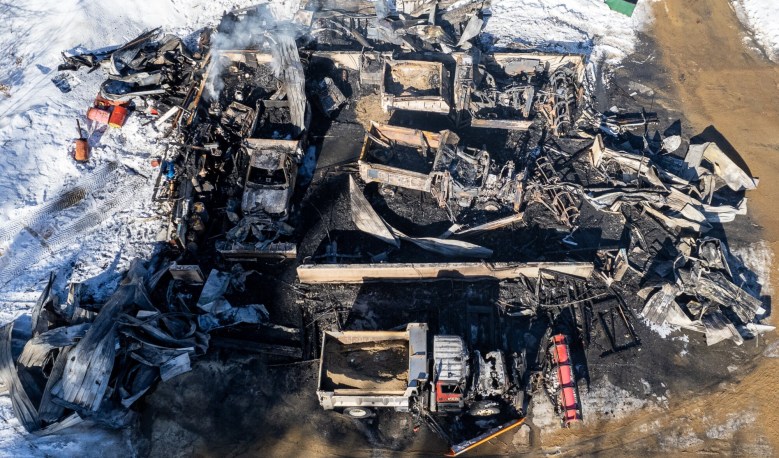 It was not immediately clear what was inside the two-bay garage or if anybody was at work there when it went up in flames. The building that burned is home to the Town of Peru Road Department.