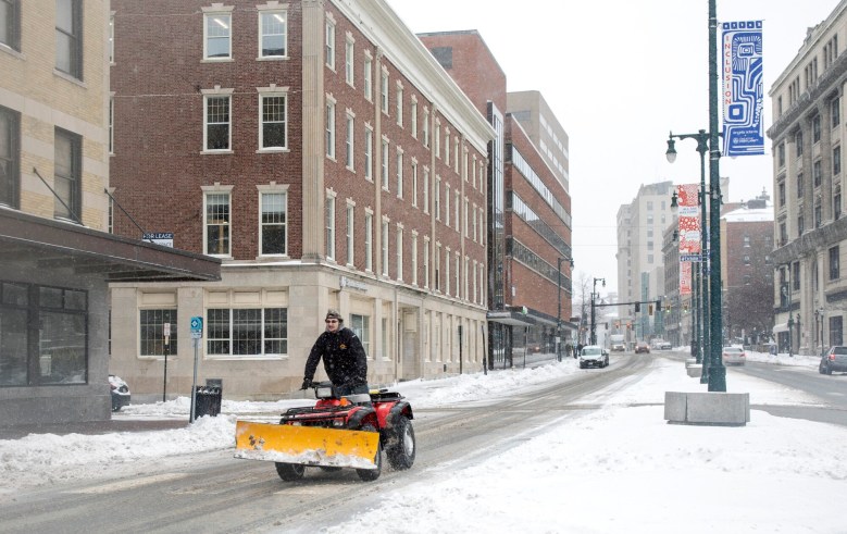 Snowfall on Tuesday closed state offices early and made roads slippery – but it wasn’t expected to bring February’s snow totals to normal levels.