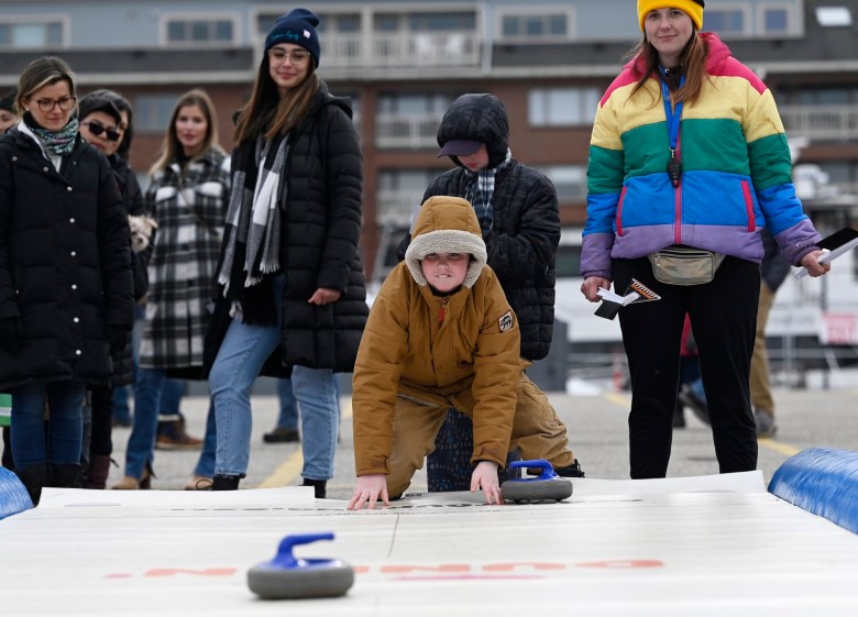 Nearby, people watched artists create ice carvings while others tried curling on a synthetic surface. Some players won prizes when they landed the disc in the bullseye. Others played cornhole.