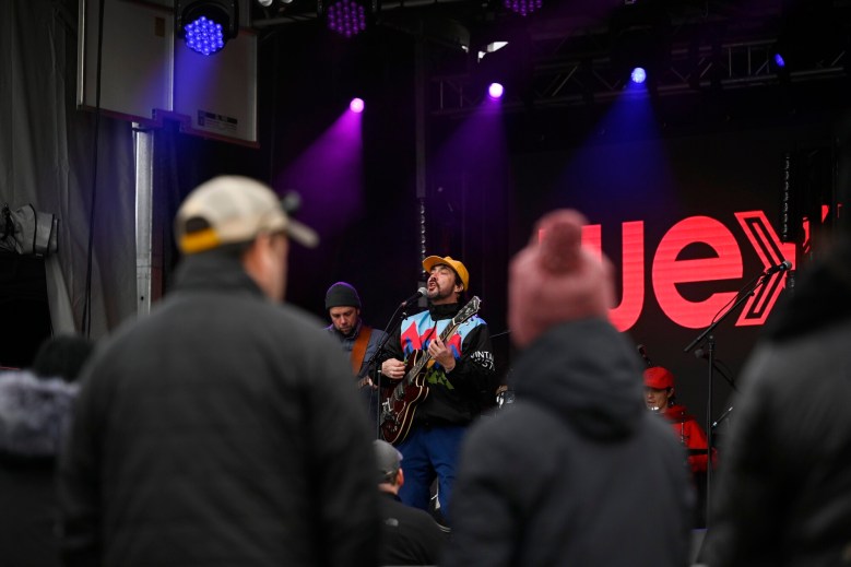 The outside stage was located at one end of DiMillo’s parking lot while a huge, blow-up igloo stood at the other. Hundreds of people were inside the heated igloo Saturday at a “Bites & Brews” session, where ticket buyers were served six pairings of appetizers and alcoholic drinks.
