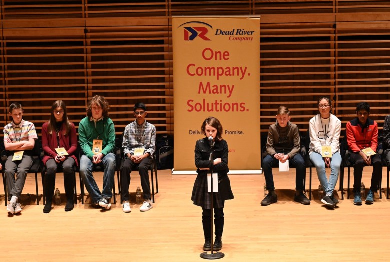 Knox County’s Adelaide Lock and Lincoln County’s Andrew Zimmerman rounded out an impressive final three. The trio survived four increasingly difficult rounds, nailing words like “grandiloquent,” “thwartwise” and “cavalcade.”