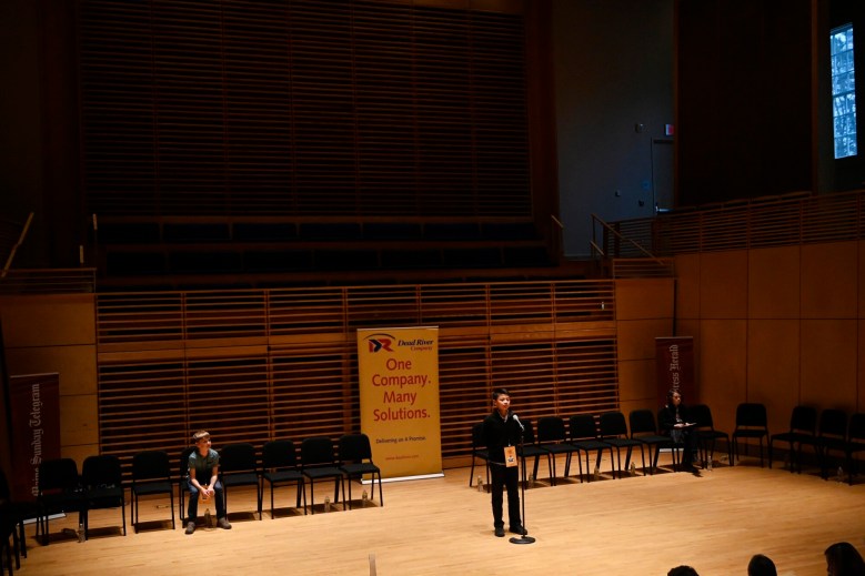 A student at St. Brigid School in Portland, Trieu outlasted 22 of the state’s best spellers over the course of two-and-a-half hours at Bowdoin College’s Studzinski Recital Hall.