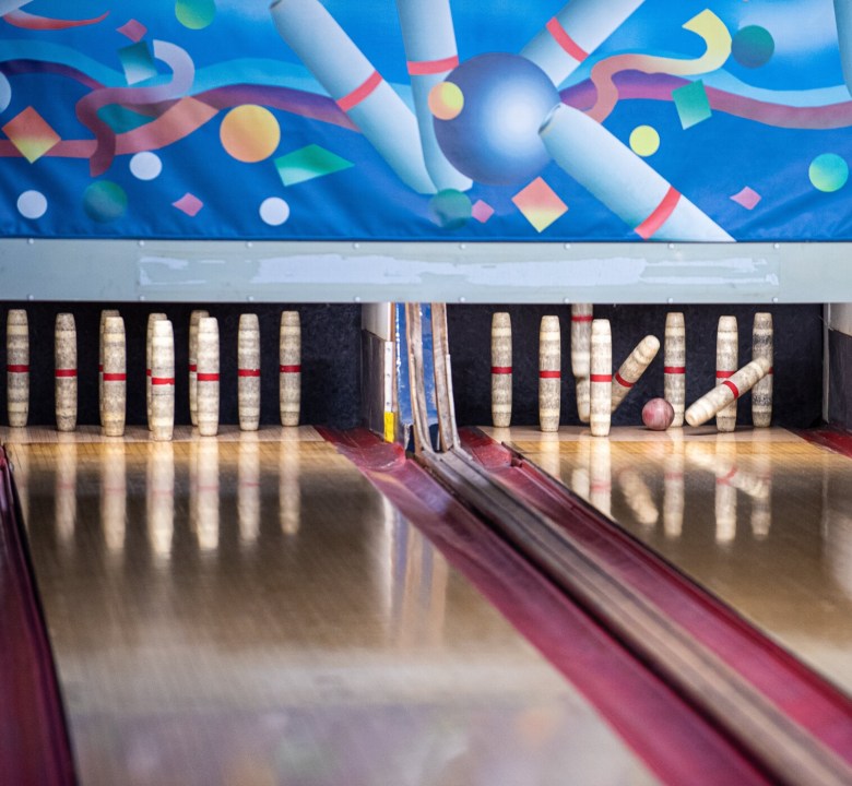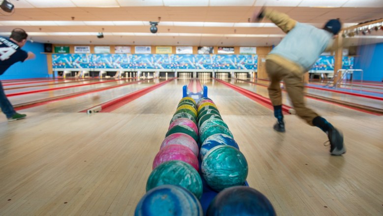 The smaller, lighter balls and thinner pins in candlepin bowling make it harder to knock the pins down, which is why players get to roll three balls per turn and can use “wood” or the downed pins to help knock over those pins still standing.
