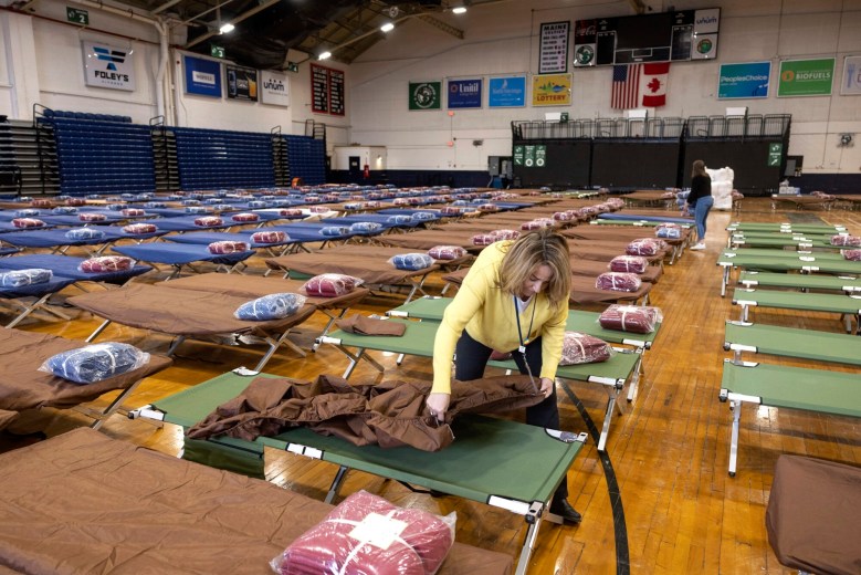 Nearly 300 people were expected to move into the city-owned sports arena, and cots were set up on the gymnasium floor where the Maine Celtics play.