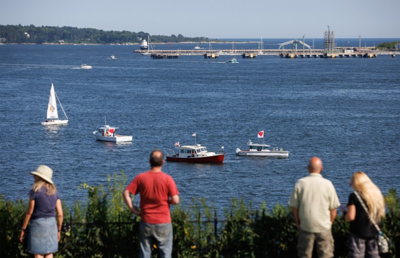 The parade took the boats past Fort Allen Park on Portland’s Eastern Promenade, Bug Light Park in South Portland, and Spring Point Ledge Lighthouse at Southern Maine Community College in South Portland.