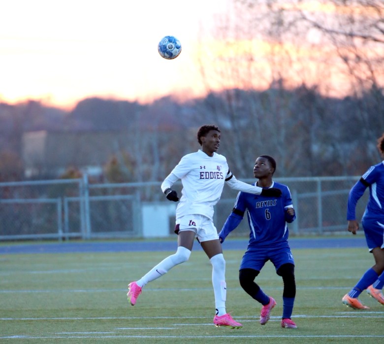 Both teams had a scoring opportunity in the first 10 minutes of Friday’s game. Dayow Daud’s free kick went wide of the frame in the eighth minute for the Red Eddies (11-5). The following minute, Mohammed Gabow received the ball and broke into the 18-yard box on a breakaway, but when Edward Little goalie Eli St. Laurent came out to challenge, Gabow slid the shot just wide of the far post.