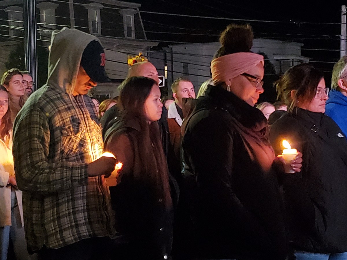 Speakers urge community to ‘stick together’ and stay strong after a gunman killed 18 people last week.