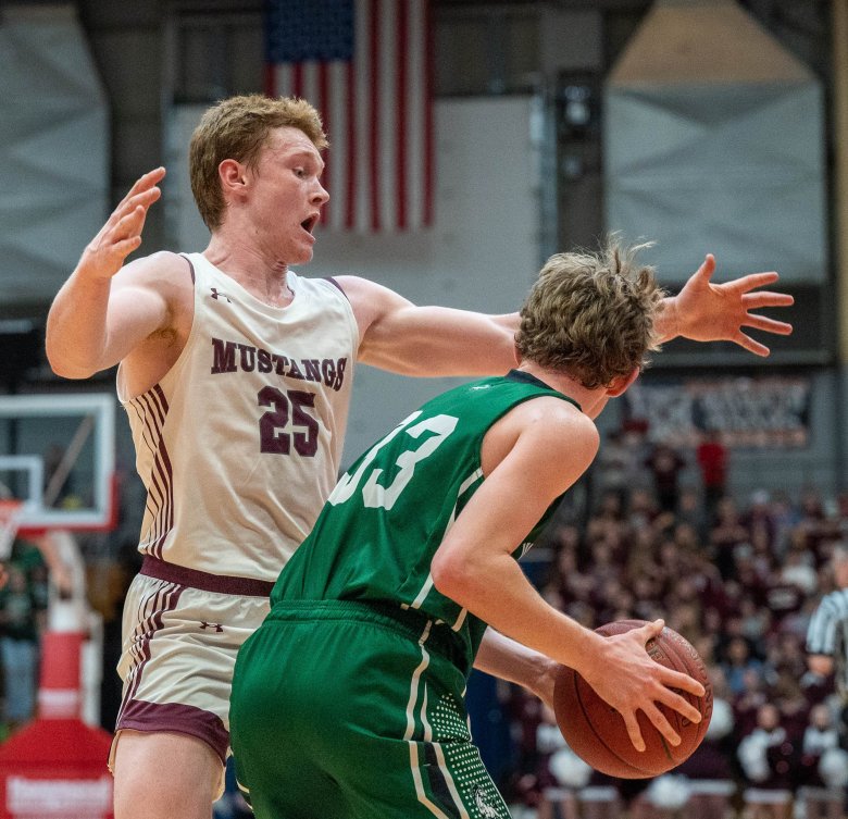 The Mustangs again fought back, and a late basket by Jacob Harmon got them within one point by the end of the first half.