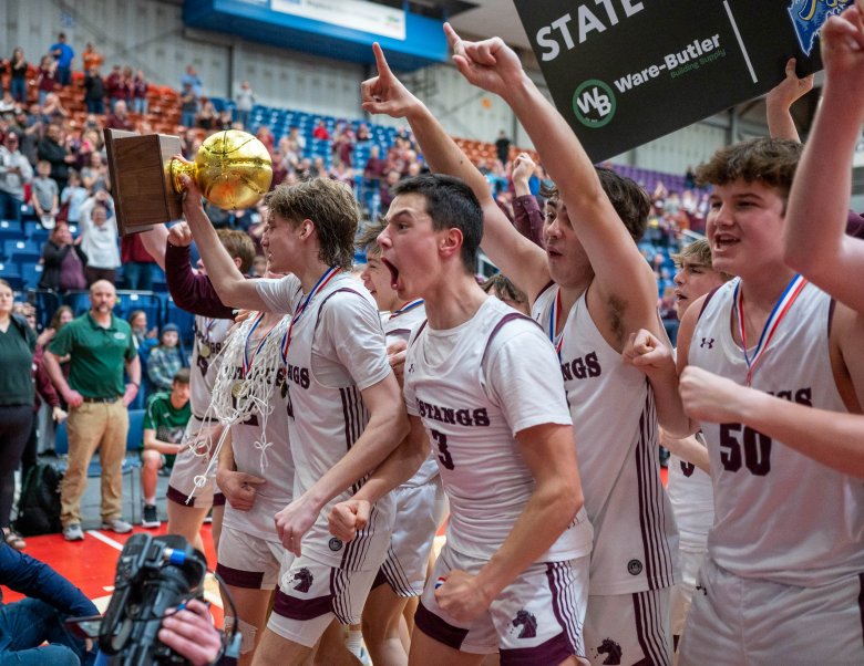 The Mustangs are boys basketball state champions for the first time, but this is the third state title for many of the players.