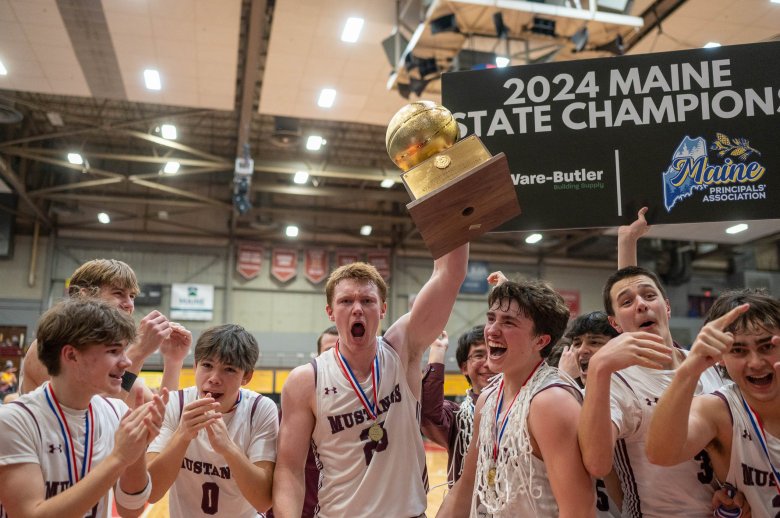 The Mustangs, though, were willing to work and refused to give in, and that’s how they earned Monmouth Academy’s first boys basketball state championship with a 52-50 victory over Mount View in the Class C title game Saturday at Augusta Civic Center.