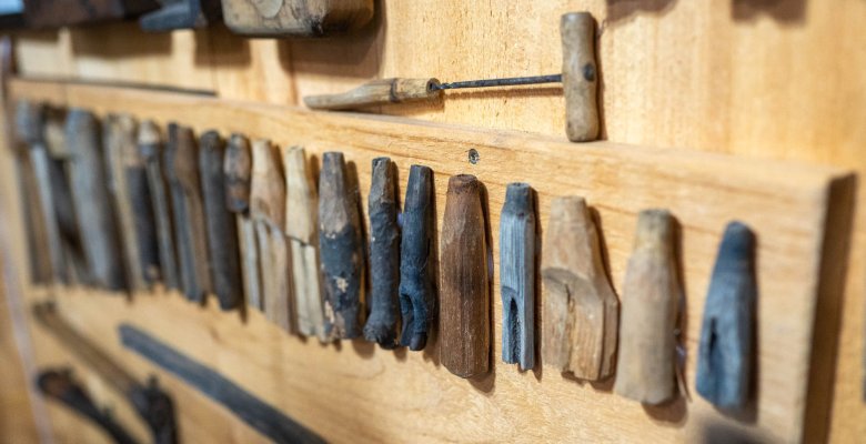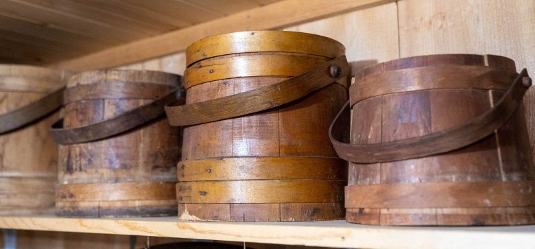 Jessop has a small display at the historical society’s 93 Lisbon St. location featuring Native American artifacts underscoring their historic connections to maple syrup production. It includes a birch bark basket used for heating sap, which she acquired on loan from the Neptune family, an eastern Maine Passamaquoddy family renowned for their basket weaving.