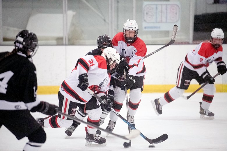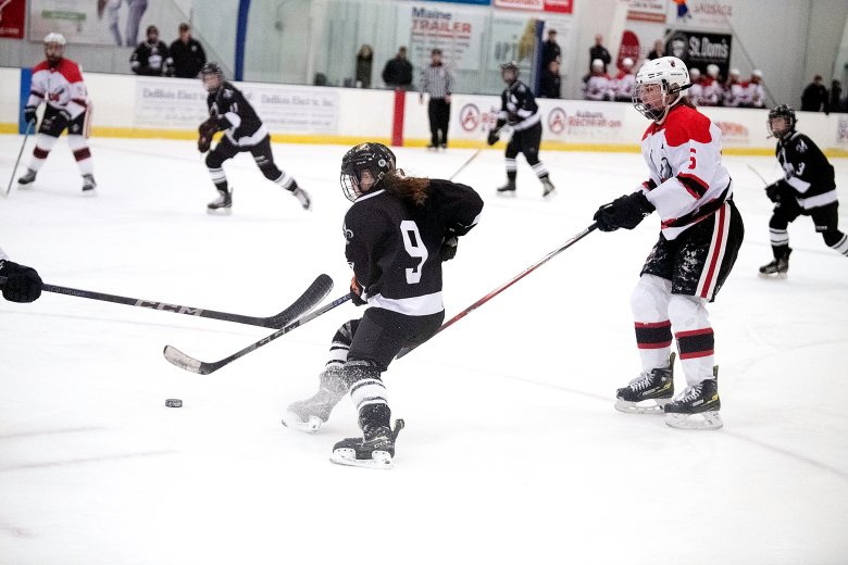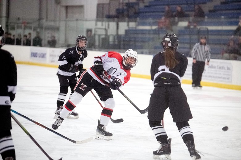 After the teams played back-and-forth for most of the second period, the Red Hornets broke it open with another two-goal spurt. First, Cologna blasted a point shot past St. Dom’s goalie Alana Wheeler (29 saves). Then, Langevin was left alone in the slot, and her wrister found the back of the net.