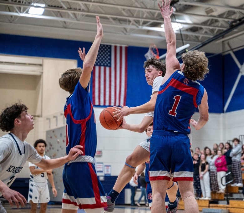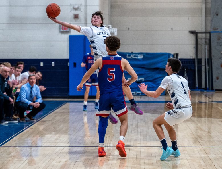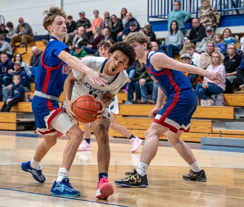 Jake Jamo added 15 points and six rebounds for the Knights (8-4), who outscored the Raiders 15-7 in the fourth quarter after leading 35-33 after three periods.
