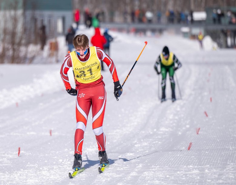 Cote posted a time of 14:49.6, beating defending champion Henri McCourt of Mt. Blue (15:05.2). Mt. Blue, though, is well-positioned to repeat as the Nordic boys team champion going into Wednesdayโs freestyle pursuit after placing five skiers in the top 13, including third-place Elias Bartlett (16:10.2) and sixth-place Grayson Hoeft (16:34.2).