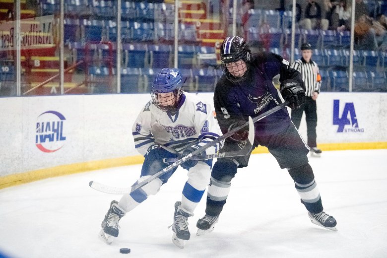 The defending Class A state champions scored three times in the third period to beat the Knighthawks, 5-3.