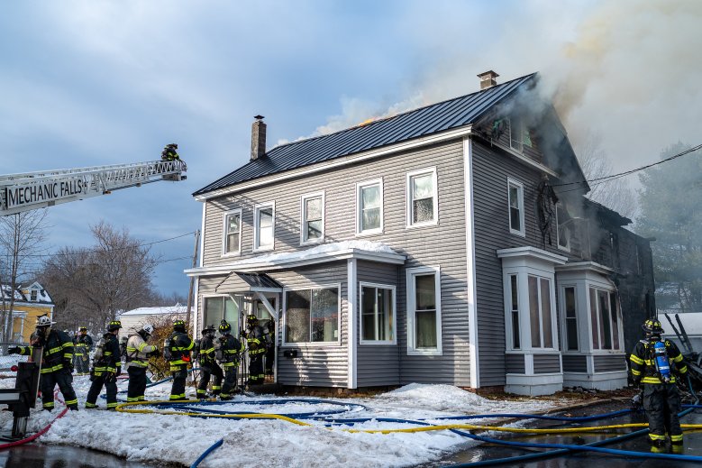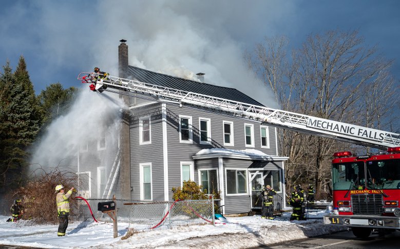 MECHANIC FALLS — The Mechanic Falls Fire Department and crews from 10 other departments worked to extinguish a house fire late Tuesday afternoon.