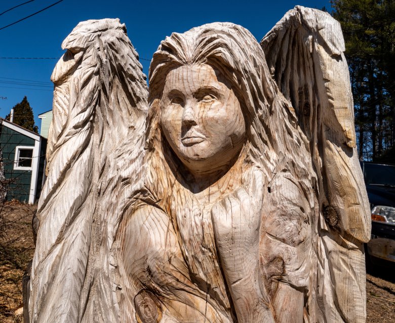 โIt usually takes about three days on a job like that,โ he said. โThe first day is spent doing the initial deep carving and shaping. The second is the detail work and cleanup. I donโt leave sawdust or any shavings lying around. The third day I spend painting and finishing the piece. I often go back a year or two later to fill in cracks and do some touch up after the wood naturally splits as it dries.โ