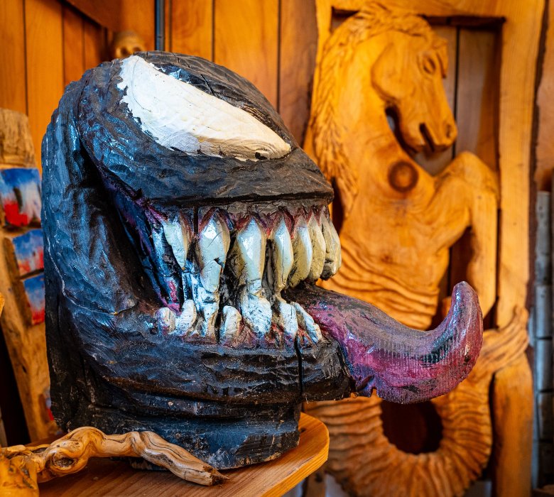 He noted that many of his pieces evolve and change from his original vision as hidden rot or imperfections appear while he carves. โI do a lot of owls, bears, birds, and other pieces that all start out similar, but each piece of wood is a little different, and no two are exactly the same.โ