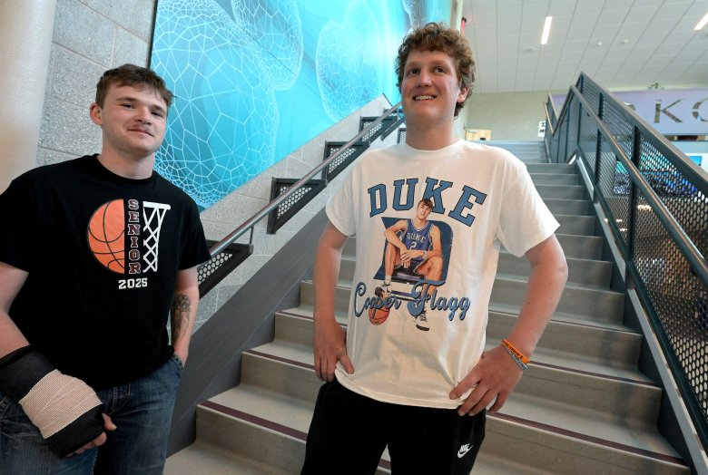 There’s a strong sense of pride at Nokomis, where Flagg played and won a state championship as a freshman. When Duke played in the ACC quarterfinals with a noon tip-off time, the game was on the cafeteria TVs. As the Blue Devils have gone on their tournament run, Flagg and Duke shirts, sweatshirts, hats and jackets have popped up daily.