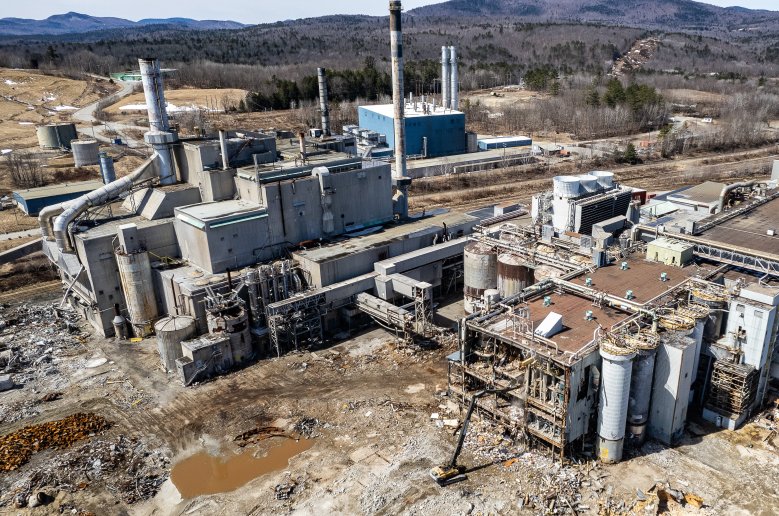 JAY — Demolition on a section of the former Androscoggin Paper mill was continuing Thursday to clear the way for a mulitmillion-dollar engineered wood manufacturing facility at 300 Riley Road.