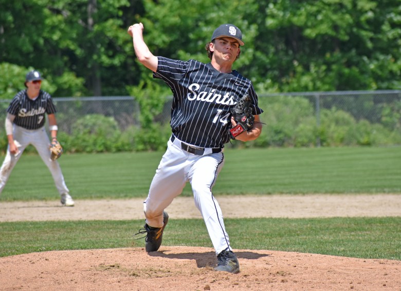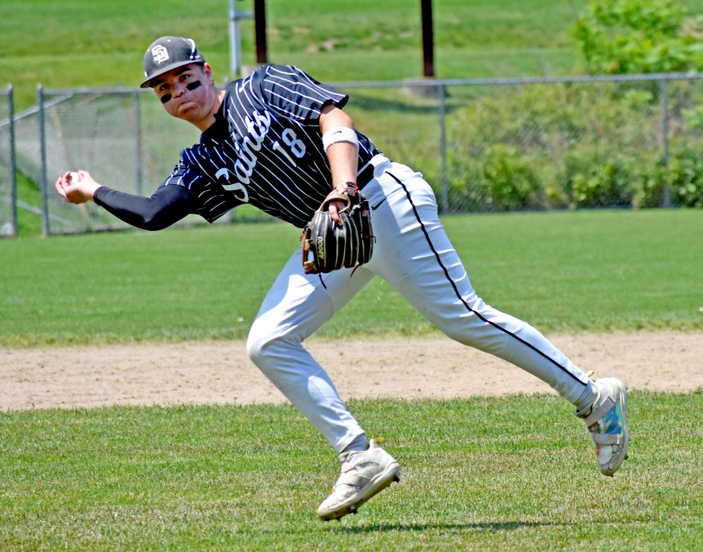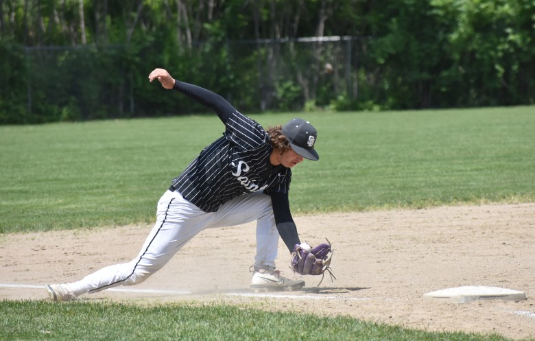 • Nolan Cavers got the Saints on the board with a two-run double, and he later scored on Ben Dumais’ RBI single to make it 3-0.