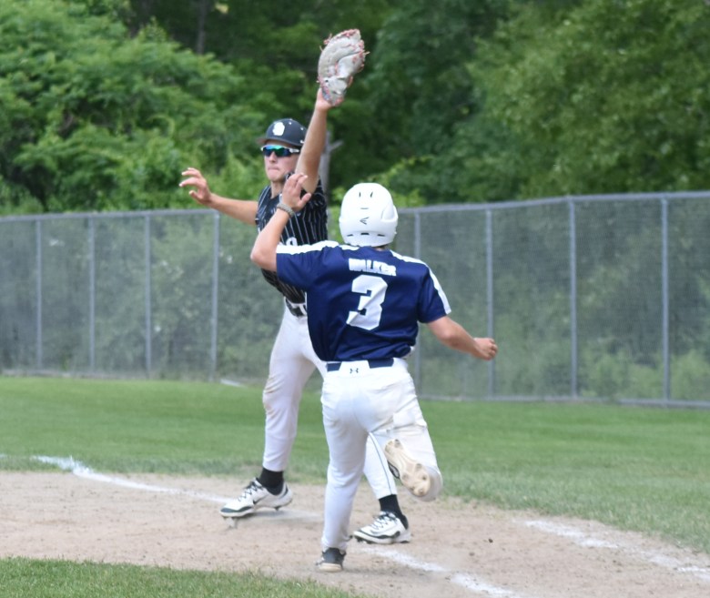• Telstar’s Bryson Walker walked to start the top of the seventh and moved to third later in the inning. With one out, the Rebels attempted a suicide squeeze, but the pitch was too high for Maceo Bartlett to get his bat on the ball, and Walker was tagged out by St. Dom’s catcher Finley Cavers during a rundown between third base and home for the second out. Saints reliever Logan LeClair then ended the game with a strikeout.