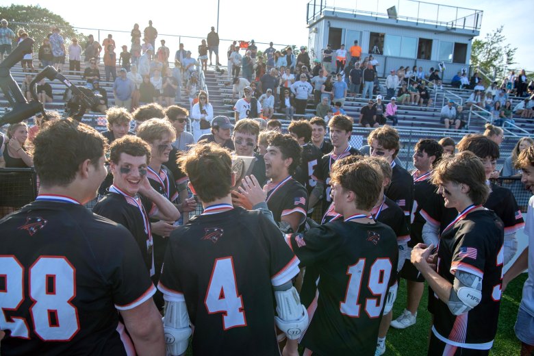 “It feels great, especially after losing (states) freshman and sophomore year,” said senior attack Zach Leinwand, who scored two goals. “The third time is the charm. We did it. It means everything to us. It went to (double overtime freshman year) and we got blown out sophomore year. To come out on top feels great.”