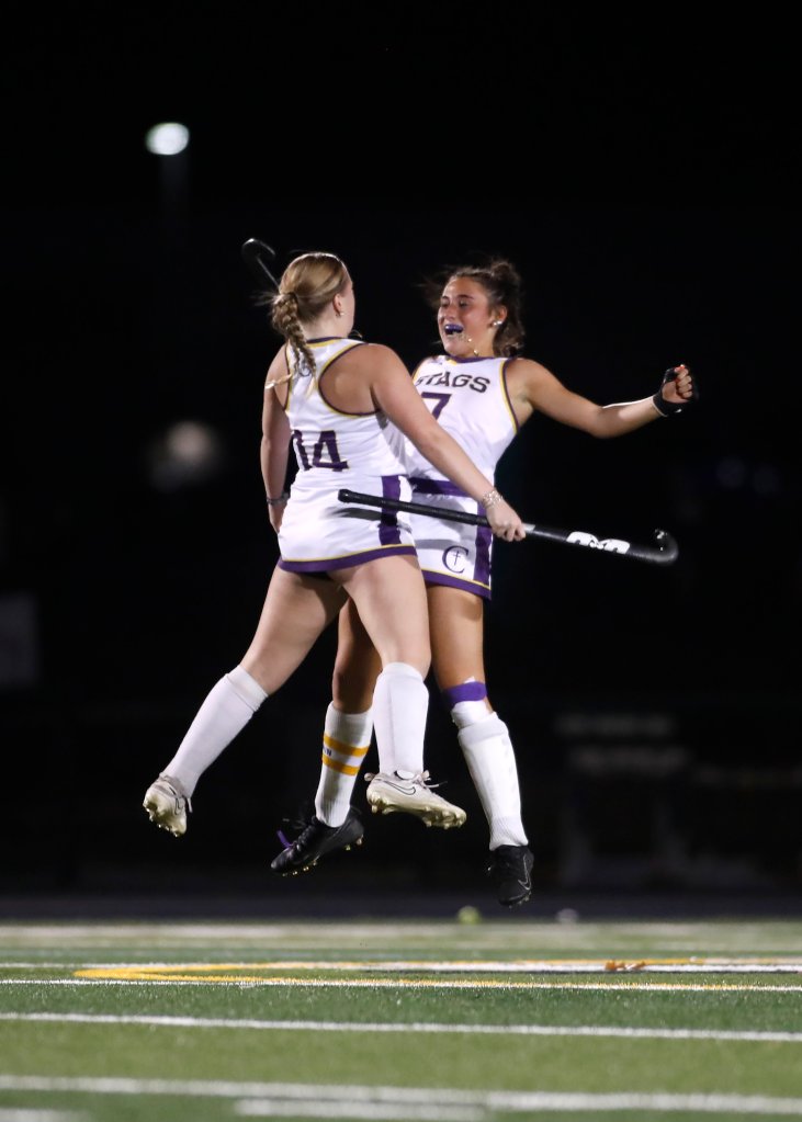 Johnson, the Varsity Maine Field Hockey Player of the Year, scored twice, including the go-ahead goal, in the 3-2 regional final field hockey victory over Biddeford and twice in the 3-1 Class A title win over Brewer. She notched a hat trick and an assist in the Stags’ 7-1 state semifinal ice hockey triumph over the Portland co-op, and scored two goals against Brunswick, including the equalizer that sent the championship to overtime.