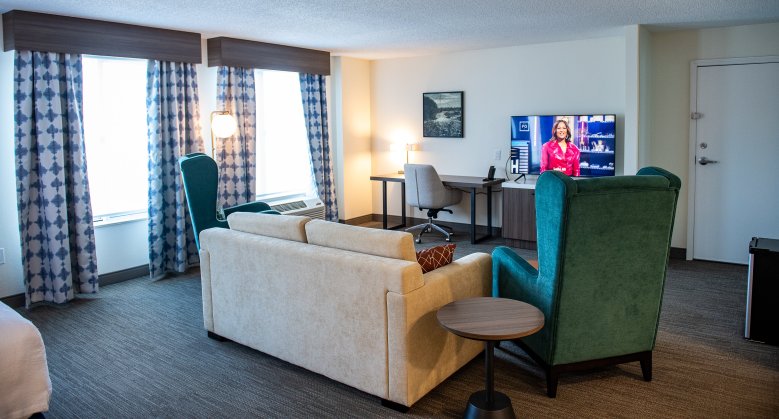 The makeover, which cost more than $1.25 million, included all guest rooms, the event space, lobby, restaurant, the Riverwatch Grand Ballroom and other public areas of the hotel, which was built in 2003 and last renovated in 2014.