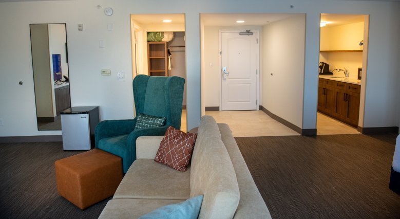 The six-story hotel has 138 guest rooms, an indoor pool, fitness center, meeting rooms, a business center, event space and other amenities. It also hosts weddings and receptions.