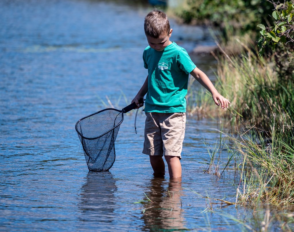 Cielo Hackney looks for frogs Thursday in Rangeley Lake in preparation for the Frog Jumping Contest during the Blueberry Festival at Town Cove Park in Rangeley. (Russ Dillingham/Staff Photographer)
