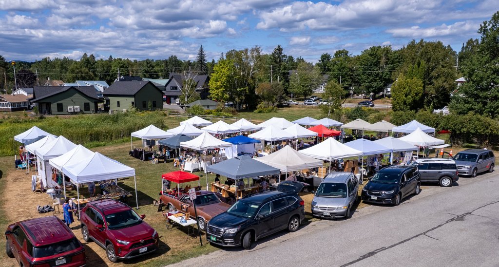 Vendor tents line up Thursday at the Blueberry Festival at Town Cove Park in Rangeley. (Russ Dillingham/Staff Photographer)