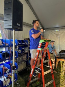 Chris Troyanos, medical services director of the Beach to Beacon, stands near the race’s finish line in Fort Williams Park in Cape Elizabeth on Aug. 2. (Patty Wight/Maine Public)