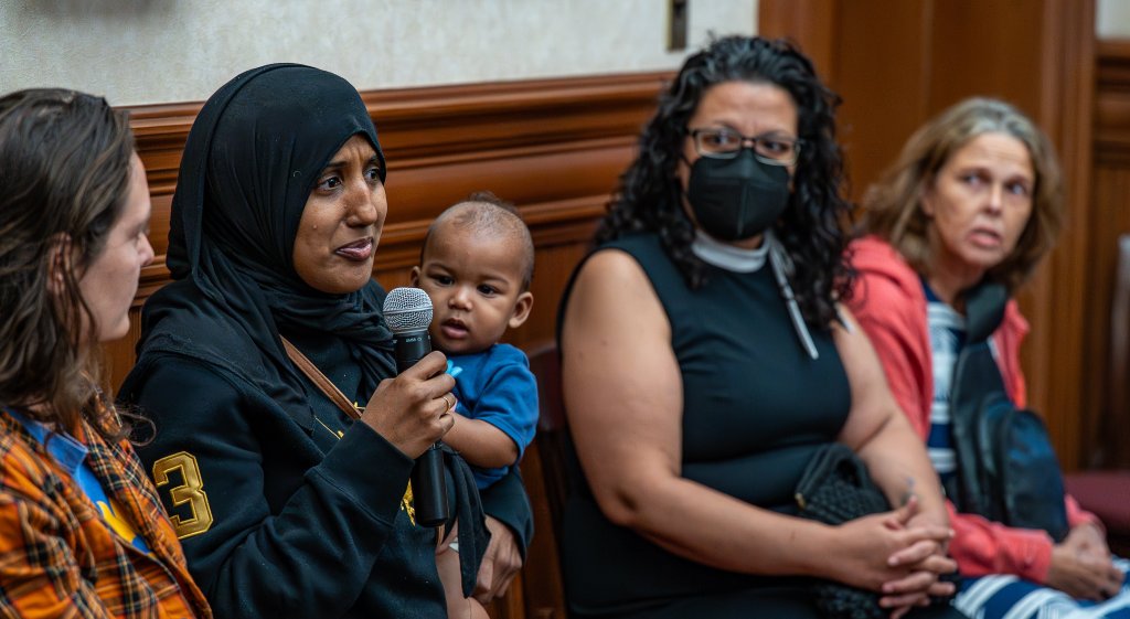 Asha Mohamed, cradling an infant son in her arms, said she would particularly like to see someone leading the department who has a sharp understanding of cultural differences. People of color and immigrants, she said, are made to feel like criminals whenever they have interactions with police.