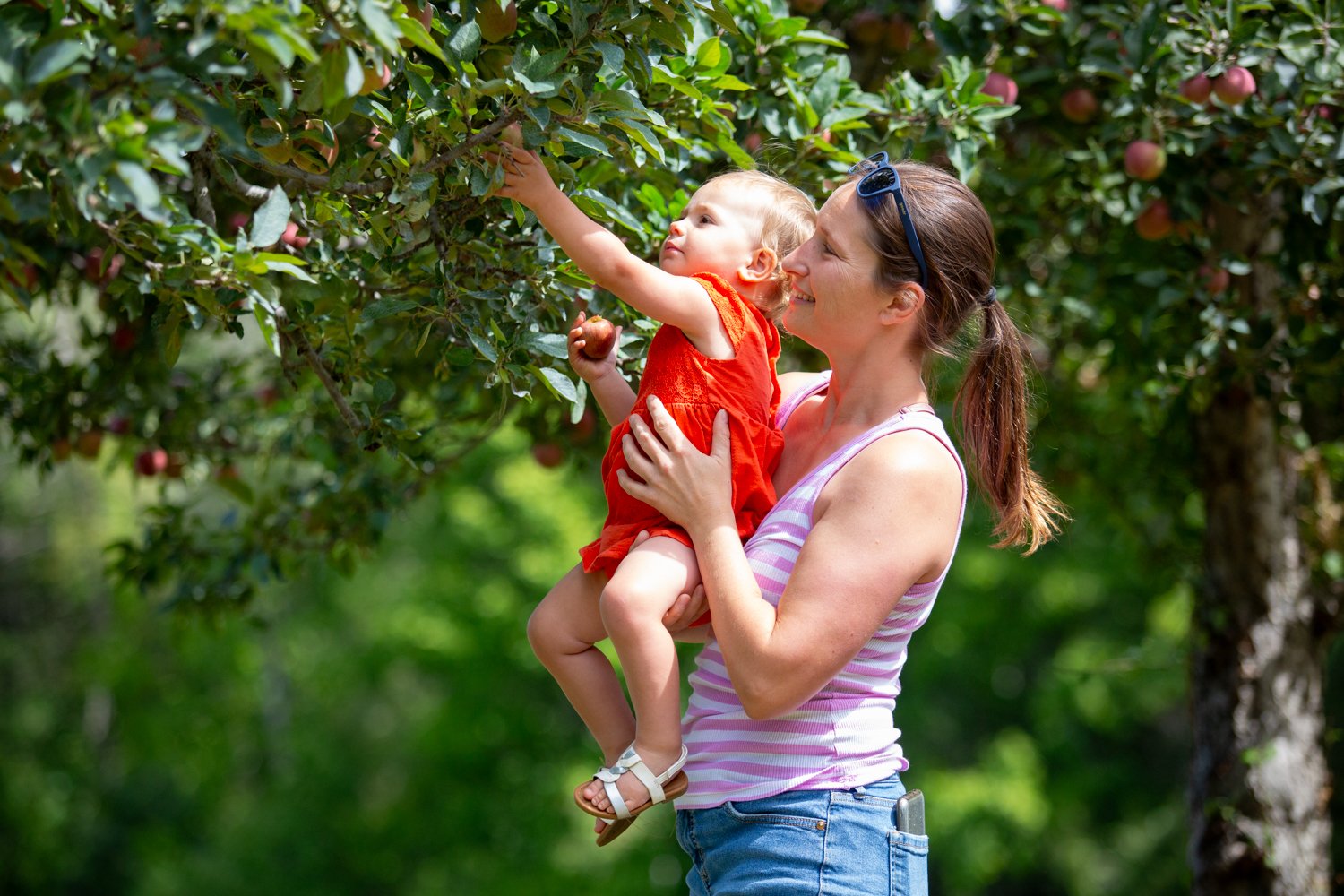 During opening day at Royal River Orchards in New Gloucester on Saturday. The 250-acre family-owned farm allows visitors to pick their own apples by the bag instead of by weight, and is open Saturdays and Sundays through mid-October this season. (Libby Kamrowski Kenny/ Staff Photographer)
