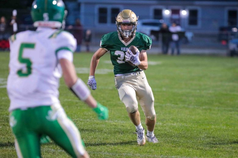 Oxford Hills gained 365 yards on the way to a 36-0 win in a Class A game at Gouin Complex. The Vikings’ defense was just as dominant, holding the Mustangs to 61 yards.