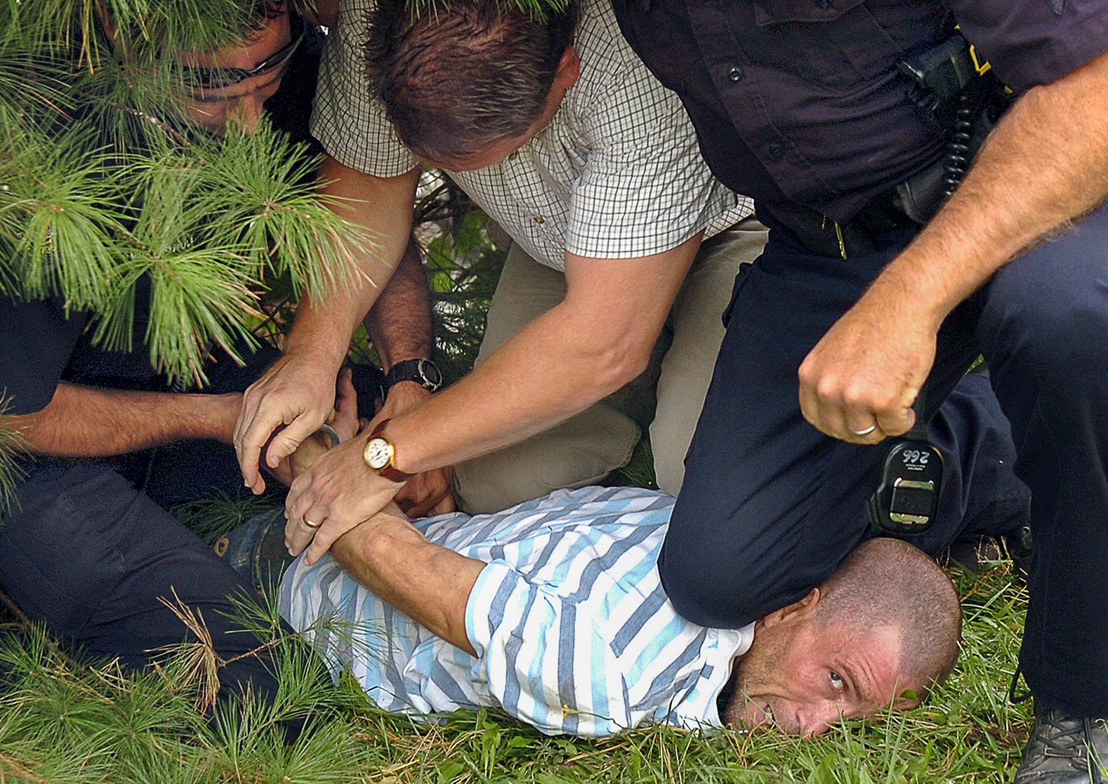 He, of course, got most of the action on camera, which ended with the person in cuffs, and one of the fieriest looks at a camera you’ll ever see.