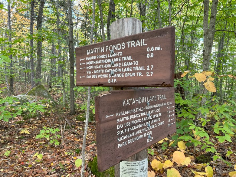 We spend two nights and three glorious days at the Martin Ponds Lean-to, one of three shelters in the Katahdin Lake sector of Baxter State Park. The others are located on the south side and north side of Katahdin Lake. The shelter at the southerly of the two tiny Martin Ponds is a 2.3-mile hike from the Avalanche Field trailhead on the Roaring Brook Road.