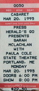 On March 20, 1995, the tour came to Portland for a show at the State Theatre. I was front and center for a jaw-dropping performance from Cole, followed by McLachlan’s stupendous set.